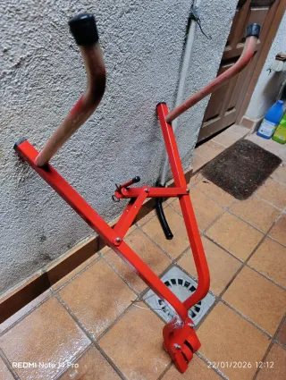 Soporte robusto para el mantenimiento de bicicletas. - Estructura de metal negro. - Base estable con patas antideslizantes. - Ajustable para diferentes tamaños de bicicleta.