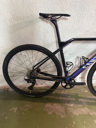 Bicicleta de cx/gravel Canyon Inflite CF SL en talla XS. Diseño moderno y ligero. - Cuadro de carbono. - Color degradado azul/morado. - Frenos de disco. Muy poco uso con grupo de 12. Velocidades GRX 140 140 36 11 y plato 40 de desarrollo. La bicicleta está toda forrada con vinilos con experiencia protector así que no tiene casi ninguna arañazo. Está muy buen estado. Las ruedas son unas shimano