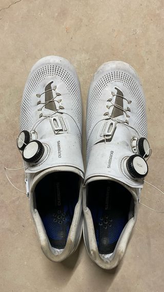 Zapatillas de ciclismo Shimano RC903 Sphyre en talla 43.5. - Cierre BOA. - Diseño perforado para ventilación. - Color blanco. En perfecto estado. Se entregan limpias y desinfectadas.