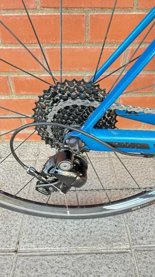 Bicicleta de carreras de color azul. Ideal para paseos y entrenamientos. - Cuadro de metal. - Ruedas de radios. - Manillar curvo.las ruedas no se si están pinchadas o solo desincchadas hay q hacerle un peque mantenimiento pero es un chollo 631 444327 llamar los frenos bien y la cadena bien .