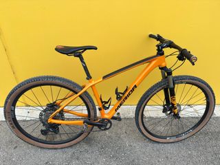 Bicicleta Merida en color naranja. - Cuadro de aluminio. - Ruedas DT Swiss. - Neumáticos Maxxis. - Frenos de disco hidráulicos. - Cambio grupo X T