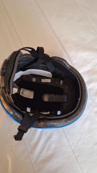 Casco azul para patines, bicicleta, patinete o skate de la marca Oxelo. Está en buen estado. - Marca: Oxelo - Color: Azul - Ideal para: Patines, bicicleta, skate, patinete Talla Xs, 47 - 52 cm.