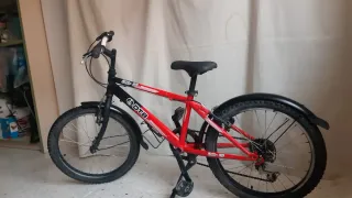 Bicicleta infantil de la marca DTB, color rojo y negro. Se le pusieron nuevos la pata de cabra y los guardabarros, que antes no los tenía. - Ruedas de 20 pulgadas. - Frenos delanteros y traseros. - Guardabarros delantero y trasero.