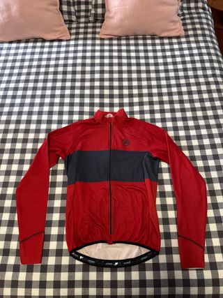 Chaqueta de ciclismo de invierno Atika, modelo Terra. Talla M, color rojo con franja negra horizontal en el pecho y logo en negro. Artículo poco usado, sin defectos y limpio. #Atika #Ciclismo #ChaquetaInvierno #TallaM #AtikaTerra #Bici #RopaCiclismo #Venta #SegundaMano