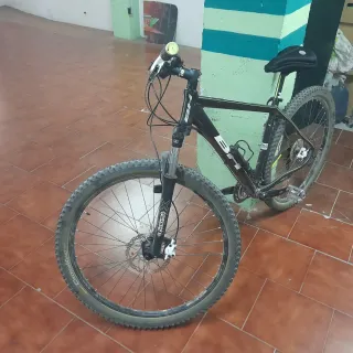 Bicicleta de montaña INDUR en color negro con detalles en azul. Talla L, cuadro de aluminio, 21 velocidades, cambios de puño, ruedas de 27.5", se puede ver y probar #27.5. #tallaL #aluminio