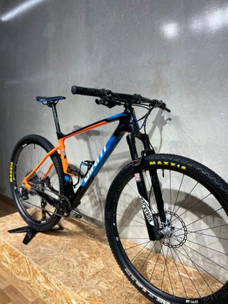 Muy buen estado, cuadro y basculante de carbono HMX. Horquilla Rock Shox Sid Ultimate de aire con 100m y bloqueo remoto con 3 posiciones para ambas suspensiones y amortiguador de aire RockShox NUDE con 100mm y bloqueo remoto con 3 posiciones. Transmisión Sram X0 eagle 1x12v con plato ovalado 34t y cassette 10/50t. Frenos de disco hidraulicos Shimano XTR con discos de 160mm Componentes de carbono y potencia de aluminio. Ruedas de carbono con bujes Extralite y neumaticos Maxxis tubeless a media vida. Financiación a tu medida. Garantía de 1 año en el cuadro y 6 meses en componentes. Envío peninsular asegurado por 49€ más
