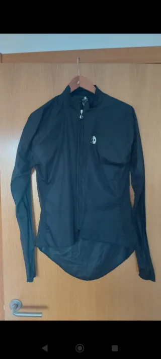 Corta viento negra de manga larga de la marca Etxeondo. Diseño con detalles reflectantes. - Manga larga. - Cuello redondo. - Detalles reflectantes en la espalda.