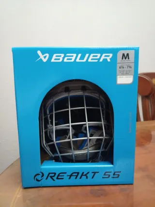 Casco de hockey Bauer RE-AKT 55, nuevo sin estrenar. - Talla M. - Color: Blanco. - Incluye reja protectora.