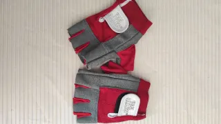 Guantes de ciclismo de la marca Van Allen en talla M. Diseñados para ofrecer comodidad y agarre. - Color rojo y gris. - Diseño sin dedos. - Cierre de velcro. - Logo de la marca en la palma.