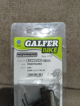 Pastillas de freno Galfer G1053 para bicicletas. - Compuesto: STANDARD G1053. - Código: FD42761053. - Compatibles con frenos Avid Elixir 1, 3, 5, 7, XX, XO. - Fabricadas en España.