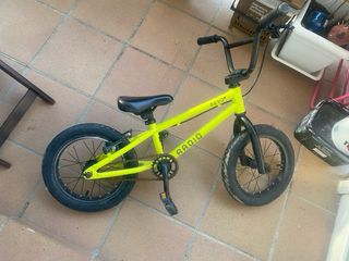 Bicicleta BMX Radio de color amarillo, ideal para los más pequeños. Perfecta para competir en el mundo del BMX. Nueva nos costo 420€ Con un nuevo mantenimiento. vuelve a estar lista para competir.