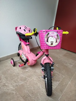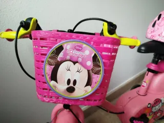 Bicicleta niña 3-5 años color rosa salmón y motivos de gato. Neumáticos de 14" practicamente intactos . Incluyo en el precio: - Cesto delantero con imagen de Minnie Mouse - Ruedines - Portamuñecas trasero y - Casco de gatitos s-m (48-54cm) Se puede ver sin compromiso ninguno. Tiene algunas señales de uso pero está como nueva.