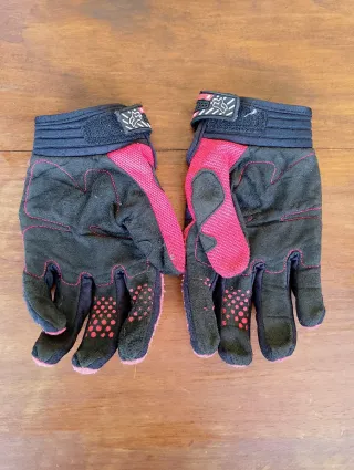 Guantes Fox Dirtpaw en color rojo y negro. - Diseño con protecciones. - Cierre de velcro en la muñeca. - Tejido transpirable - Sin roturas - Talla L
