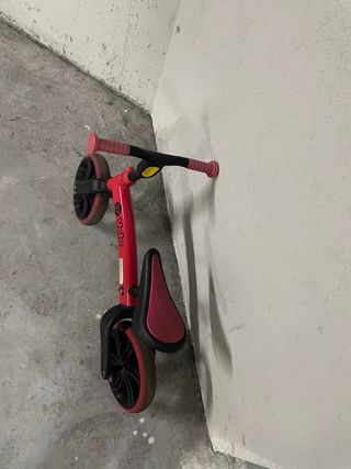 Bicicleta de equilibrio Velo en color rojo, ideal para los más pequeños. - Marco de metal resistente. - Ruedas negras con borde rojo. - Asiento y manillar regulable en altura. -la rueda trasera puede llevar 1 o 2 despendiendo de la estabilidad que se necesite. Dispongo de la caja y todo lo que venía con la bicicleta.