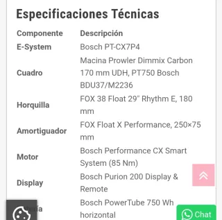 Bicicleta eléctrica KTM Macina Pro 29. Talla L(talla pequeño ) 170 a 180cm Tiene 1300km pero el cuadro es nuevo sin usar - Modelo: Macina Prolower master - Año: 2025 - Ruedas de 29 y 27'5 pulgadas. E-System Bosch PT-CX7P4 Cuadro Macina Prowler Carbon 170 mm UDH, PT750 Bosch BDU37/M2236 Horquilla FOX 38 Float 29" 180 mm Amortiguador FOX Float X Performance, 250×75 mm Motor Bosch Performance CX Smart System (85 Nm) Display Bosch Purion 200 Display & Remote Batería Bosch PowerTube 750 Wh horizontal Cargador Bosch Standard Charger 4A