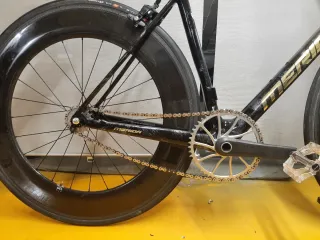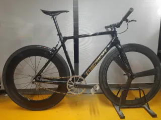 Bicicleta de carbono merida estilo fixie. Un diseño moderno y ligero. - Cuadro de carbono. - Ruedas de perfil carbono. Progress - bielas carbono sram plato 48d Puente freno shimano 105 Pintura personalizada Tubulares 28"