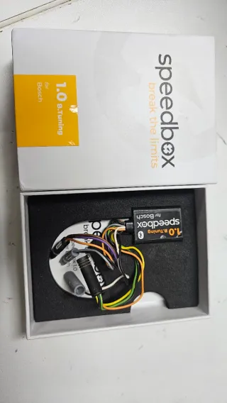 BOSCH SMART SYSTEM Deslimitador SpeedBox 1.1 B.Tuning para motores Bosch. Este dispositivo permite ajustar la velocidad máxima de tu bicicleta eléctrica. - Modelo: 1.1 B.Tuning - Compatibilidad: Motores Bosch - Conectividad: Bluetooth PARÁMETROS: Velocidad máxima: Ilimitada (máx. 35 km/h recomendado) Configuración del límite de velocidad: SÍ Display: Velocidad real: NO Distancia recorrida correcta: Después de finalizar la cuenta regresiva Activación/desactivación (no realizar mientras se conduce): Función WALK / - + - + Indicación de activación/desactivación: SÍ (3.5 / 2.5 km/h) Compatible con: Todas las pantallas Smart System