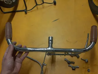 Manillar de bicicleta clásico orbea con acabado cromado recien hecho con freno de varilla antiguos con alguna piezas a mallores como zapatas y cierres de ruedas - Diseño curvo. - Incluye puño de goma en un extremo. -