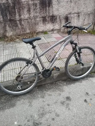 Bicicleta de montaña de color gris, marca Btwin. Cuadro de aluminio Ruedas de 26 pulgadas. Cables nuevos Recién engrasada