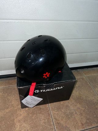 Casco de skate de la marca Tijuana en color negro. - Diseño con ventilación. - Logo de la marca en rojo. -Regulador de tamaño Precio negociable