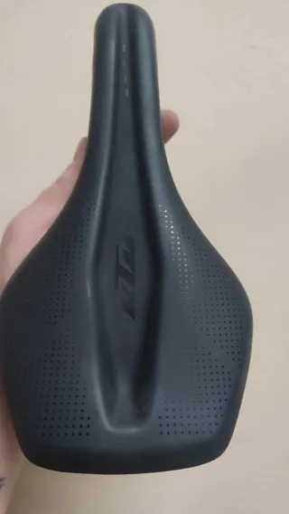 Sillín KTM Line Sport en color negro. Diseño ergonómico con perforaciones. Quitado de bicicleta KTM myroon pro nueva. - Logo KTM en relieve. - Diseño con canal central. - Acabado mate.