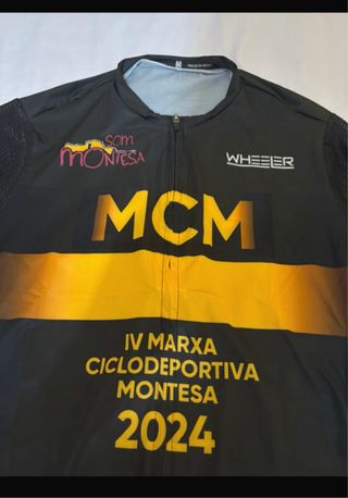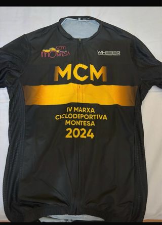 Maillot de ciclismo Wheeler para la marcha cicloturista Montesa 2024. - Color negro con detalles en amarillo. - Diseño con logo SOM MONTESA y MCM. - Talla M.