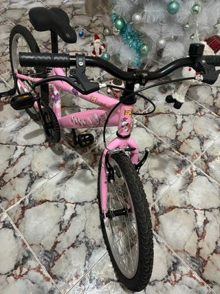 Bicicleta infantil de color rosa, sin uso. - Ruedines incluidos. - Diseño con flores y personajes. - Frenos manuales. precio negociable