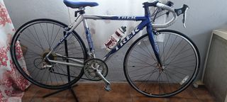Bicicleta de carretera Trek en buen estado general. Monta grupo Shimano 105, muy fiable y suave de funcionamiento. Cuadro de aluminio ligero y resistente. Se vende por no usar.