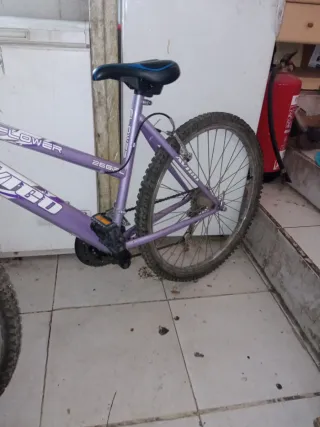 Bicicleta morada de montaña, modelo FLOWER. - Rueda de 26 pulgadas. - Cambio de marchas. - Frenos. - Sillín ajustable.