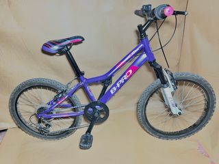 Bicicleta infantil de color morado con detalles en rosa y blanco. Ideal para iniciarse en el ciclismo. - Marca: B-PRO - Cambio de 5 marchas - Ruedas de 20 pulgadas