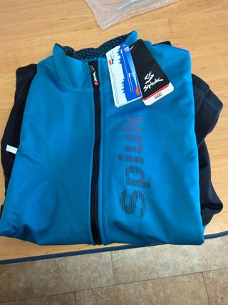 Chaqueta Spiuk de membrana con diseño anatómico. Color azul y negro. Talla XL. Nueva a estrenar. Se compró no me valía y no se pudo devolver por falta del ticket - Cremallera frontal completa. - Cuello alto. - Puños ajustados. - Logo de Spiuk en el pecho.