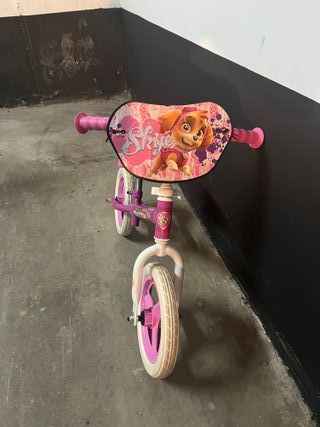 Bicicleta de equilibrio para niñas con diseño de Skye de la Patrulla Canina. Ideal para aprender a montar. - Manillar rosa con puños de goma. - Asiento acolchado con imagen de Skye. - Ruedas de goma blancas con detalles rosas. - Marco de color rosa.