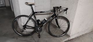 En buen estado.Lista para rodar. Cuadro: Aluminio con horquilla de carbono. Grupo: Shimano 105 COMPLETO (manetas, frenos y desviadores). Transmisión: 3 platos. Talla: L (mido 1,83m). Componentes: Sillín San Marco, 2 portabidones, manillar/tija de aluminio. Pedales: Compatibles con Look. Estado: Sin defectos, solo roces estéticos por uso. Cubiertas a media vida. Acepto ofertas. Entrega en mano en Villamediana de Iregua.