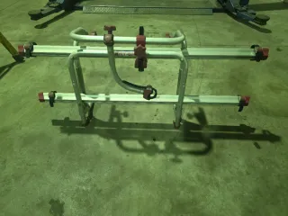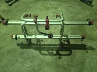 Portabicicletas Fiamma diseñado para autocaravanas. - Estructura de aluminio. - Soportes para bicicletas con correas de sujeción.