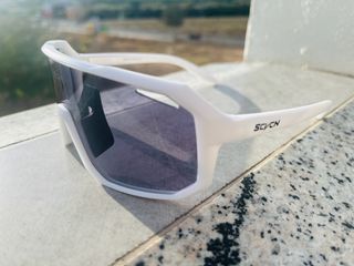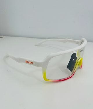 Gafas de ciclismo con lentes fotocromáticas. - Montura blanca. - Lentes fotocromáticas. - Marca SCVC.