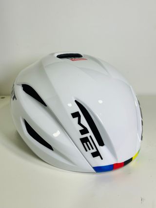 Casco de ciclismo MET de color blanco, compacto y a estrenar. Talla M 54-60cm de abertura. Modelo apto para rutas en carretera, montaña o gravel. Modelo Manta edición Tadej Pogacar, de idénticas características y calidades al modelo oficial. Fabricado con una carcasa de policarbonato y un revestimiento de EPS (poliestireno expandido) para una protección optimizada y peso liger. Sistema de ajuste de 360° que permite un ajuste seguro y cómodo, y tiene orificios de ventilación para mantener la cabeza fresca. Diseño elegante, transpirable y aerodinámico. 💰 Hago lotes y descuentos al comprar más productos de mi perfil.