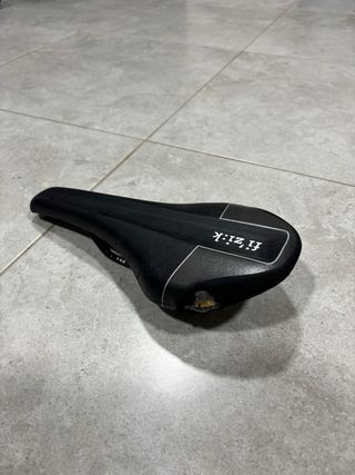 Sillín con no demasiado uso, pero rasgado por caída. Estucturalmente en perfecto estado, daño solo visual. Bastante comodo y antiprostático. 13cm ancho por 28,5cm largo.