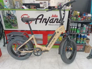 Bicicleta eléctrica Biwbik Dakar con batería de 748Wh. Ideal para todo tipo de terrenos. - Color beige. - Ruedas anchas para mayor estabilidad. - Portabultos trasero. - Diseño robusto.