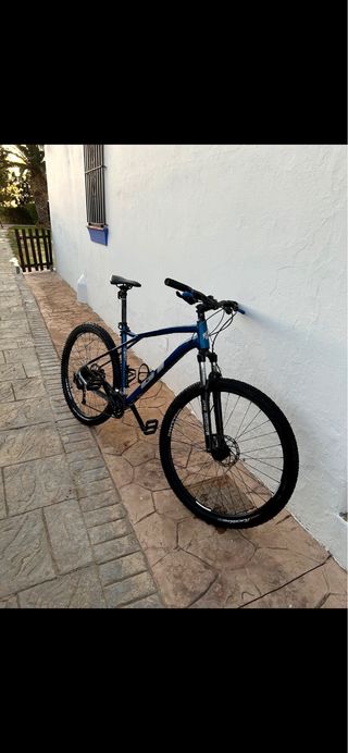 Bicicleta de montaña con ruedas de 29 pulgadas. Hay que cambiar el cambio delantero por qué no va bien. - Cuadro de color negro con detalles en azul. - Suspensión delantera. - Frenos de disco.
