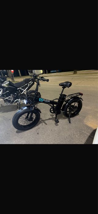 Bicicleta eléctrica plegable de color negro, con ruedas anchas y un diseño moderno. - Marca: KUDA - Color: Negro - Tipo: Plegable - Ruedas: Anchas