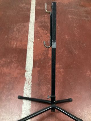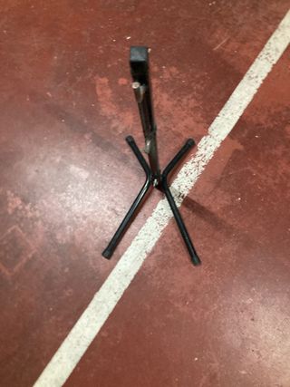 Práctico soporte de suelo para bicicletas. - Fabricado en metal negro. - Diseño de trípode estable.