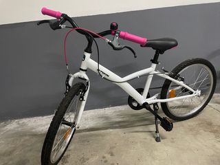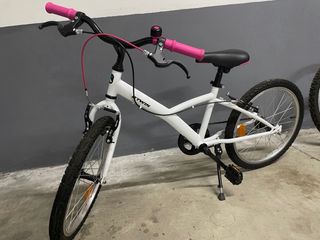 Bicicleta infantil de la marca B'twin, ideal para niños de 6 a 9 años. Diseñada para continuar en el ciclismo. - Cuadro resistente. - Ruedas de 20 pulgadas. - Frenos fiables. - Sillín ajustable. Esta usada. Tiene algún rasguño de roce en los frenos de mano pero funciona correctamente. Ruedas en buen estado.