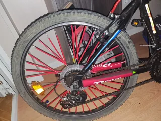 Bicicleta de montaña Btwin Rockrider en perfecto estado de estética y todo bien ajustado, es decir que esta completamente funcional, no necesita acerle nada mas que montarte en ella y a disfrutarla 🚴❤💯 - Cuadro de aluminio muy ligero 🪶 - 27 marchas grupo Sram X5 🚀 - Frenos de disco muy eficaces 💪 - Talla M para personas 160-190cm📏 - Cómodo sillín original ✅ - Pedales plataforma de aluminio ✅