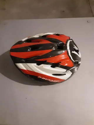 Casco de ciclismo con diseño deportivo y ventilación. - Marca: Dunlop - Colores: Rojo, negro y blanco - Diseño con múltiples orificios de ventilación