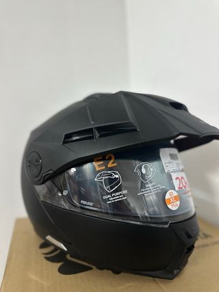 Casco de moto Schubert E2 en color negro. Diseñado para ofrecer versatilidad y comodidad. - Modelo E2. - Color negro mate. - Talla XL (61 cm / 7 7/8). - Visera ajustable y fácil de quitar. - Preparado para sistemas de comunicación SMART. - Cierre tipo Pro-lock.