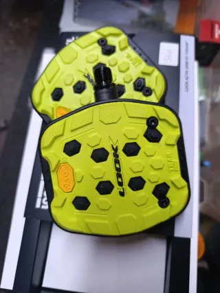Pedales de bicicleta LOOK Trail con suela Vibram. - Color amarillo lima. - Diseño con tacos hexagonales para un agarre óptimo. - Incluye sistema Activ Grip de Vibram.
