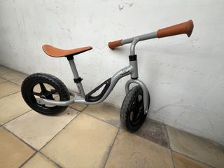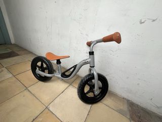 Bicicleta de equilibrio de la marca Chillafish, ideal para los más pequeños. - Marco de metal plateado. - Asiento y puños de color marrón. - Ruedas negras.