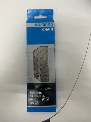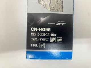 Cadena para bicicleta de montaña Shimano XT CN-HG95. - Modelo: CN-HG95 - Velocidades: 10v - Longitud: 116L - Incluye pasador de unión. - Tecnología: HG-X, SIL-TEC