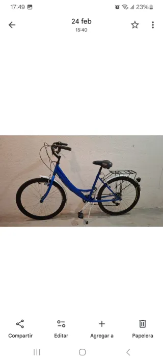 Bicicleta en perfecto estado, con muy poco uso. - Color crema. - Cesta delantera. - Guardabarros. - Portabultos trasero. Y te obsequio el candado