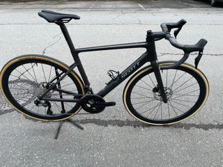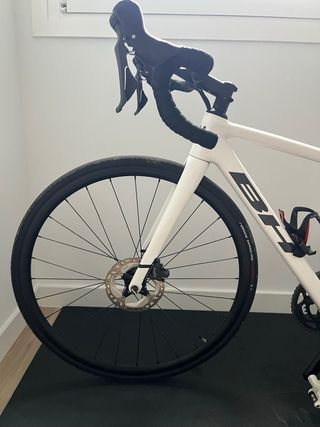 Bicicleta de carretera BH SL1 en color blanco. Talla XS. - Cuadro de fibra de carbono realizada con la tecnología HCIM. - Cableado integrado - Frenos de disco. - Transmisión Shimano. - Ruedas de perfil.